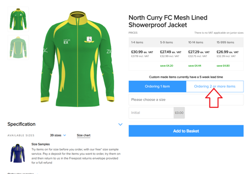 6. You will need to approve the sizes and any personalisation on the items that you are ordering, as part of the checkout process: