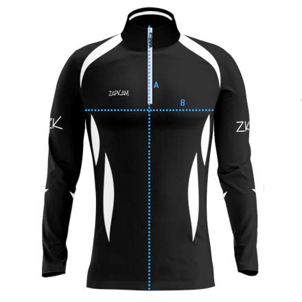 Find a similar item of clothing that fits you well. Lie it down on a flat table. Measure your existing item from top to bottom (measurement A) and from underarm to underarm (measurement B). Compare these measurements with the detailed size chart below to find your size.